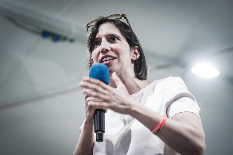 la segretaria del Pd Elly Schlein al comizio di Pesaro in